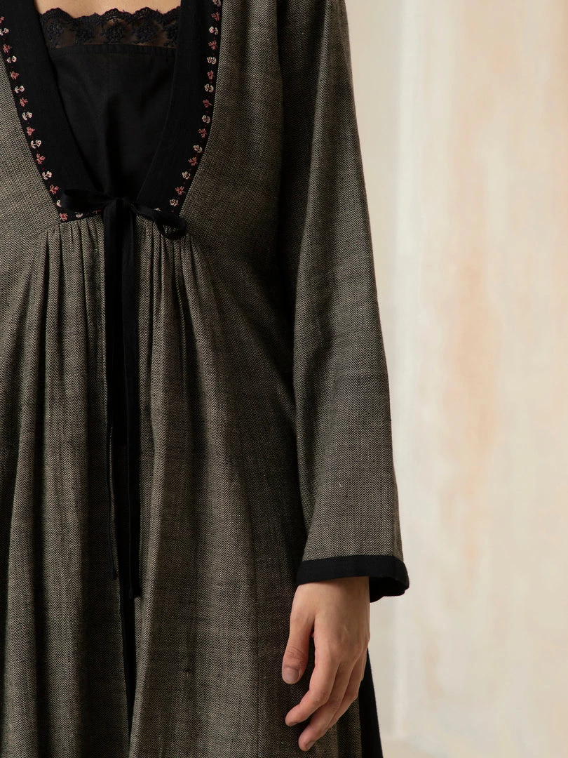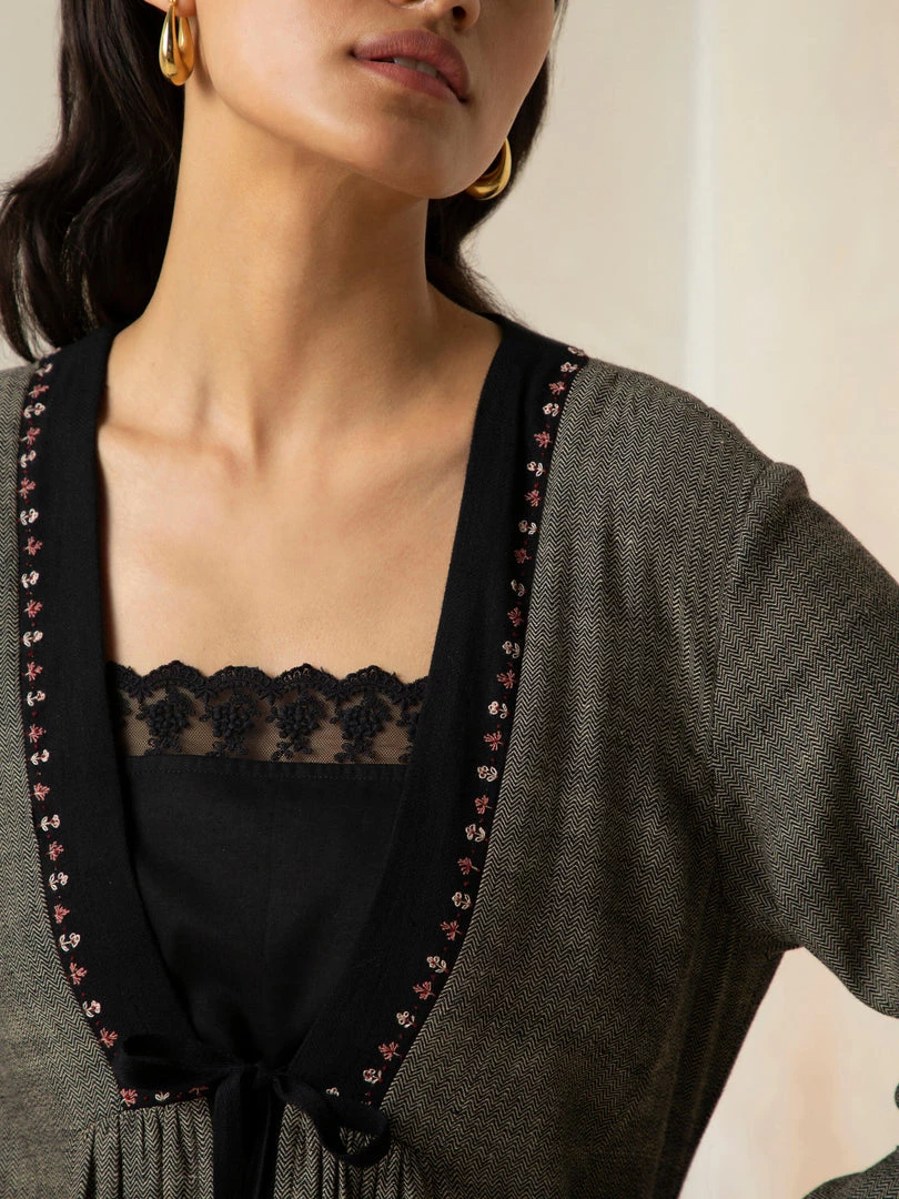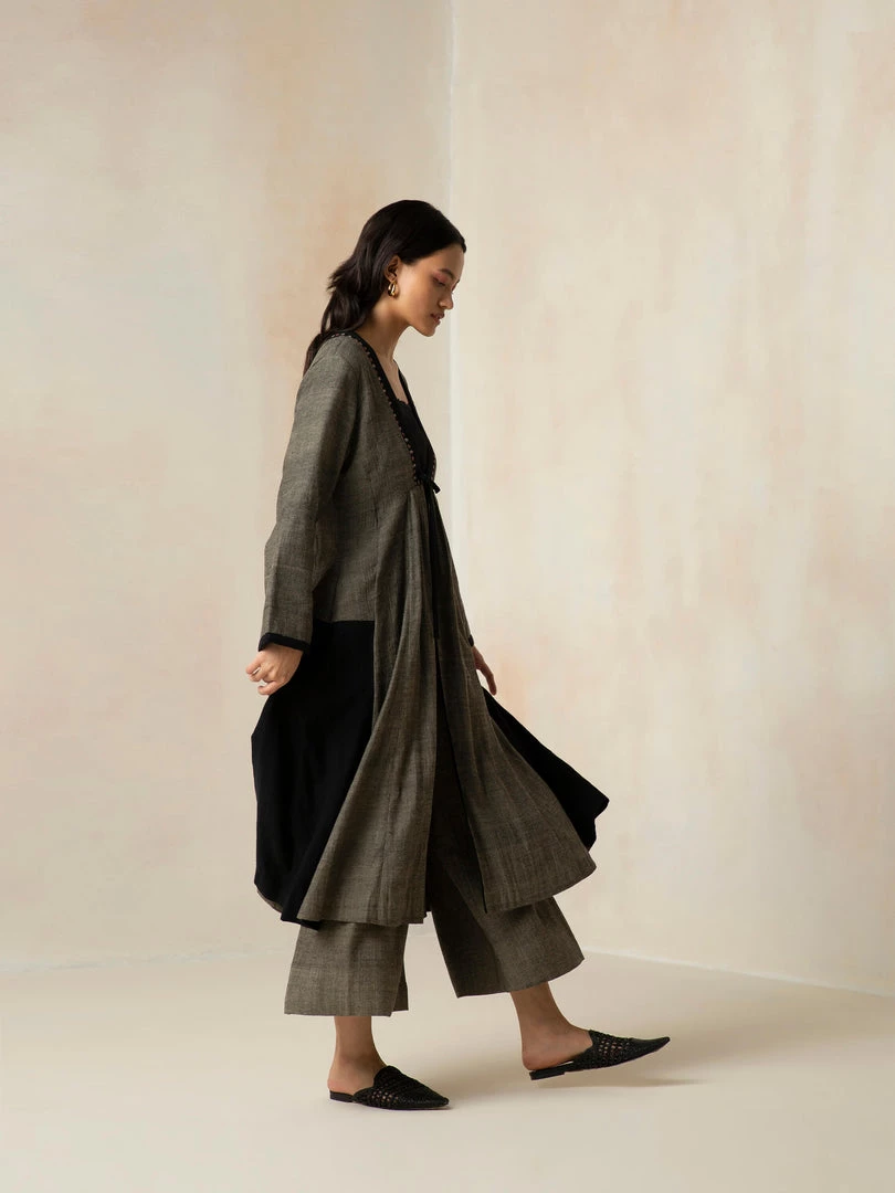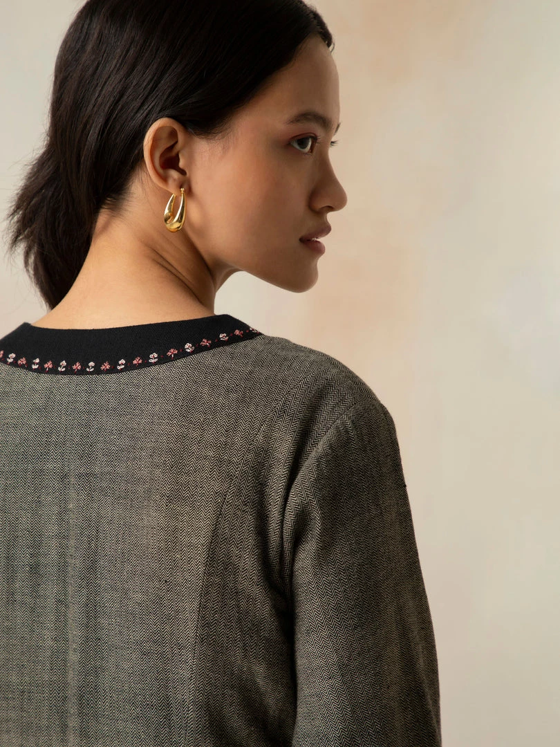 Music does not need language of words for it has movements of dance to do its translation. We waltz into this season with this versatile color blocked overlay jacket that features delicate hand embroidery and generous pockets.