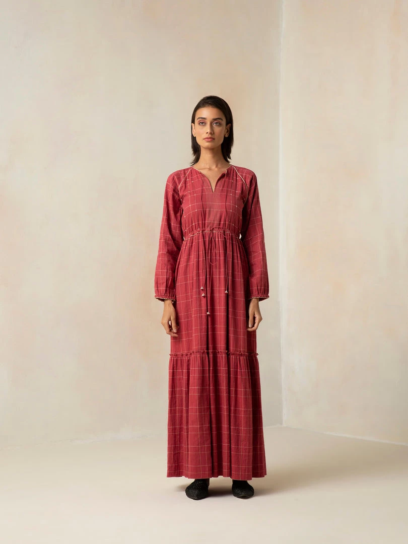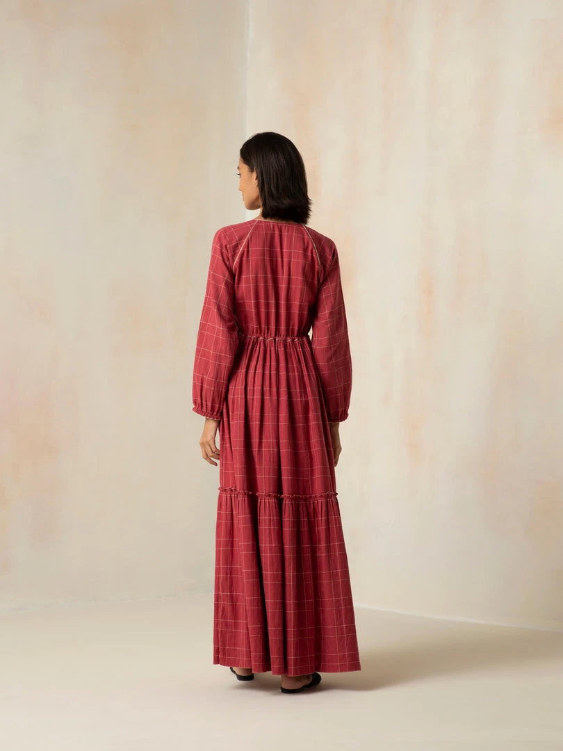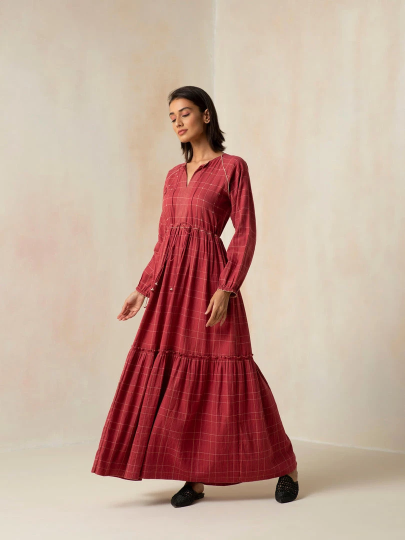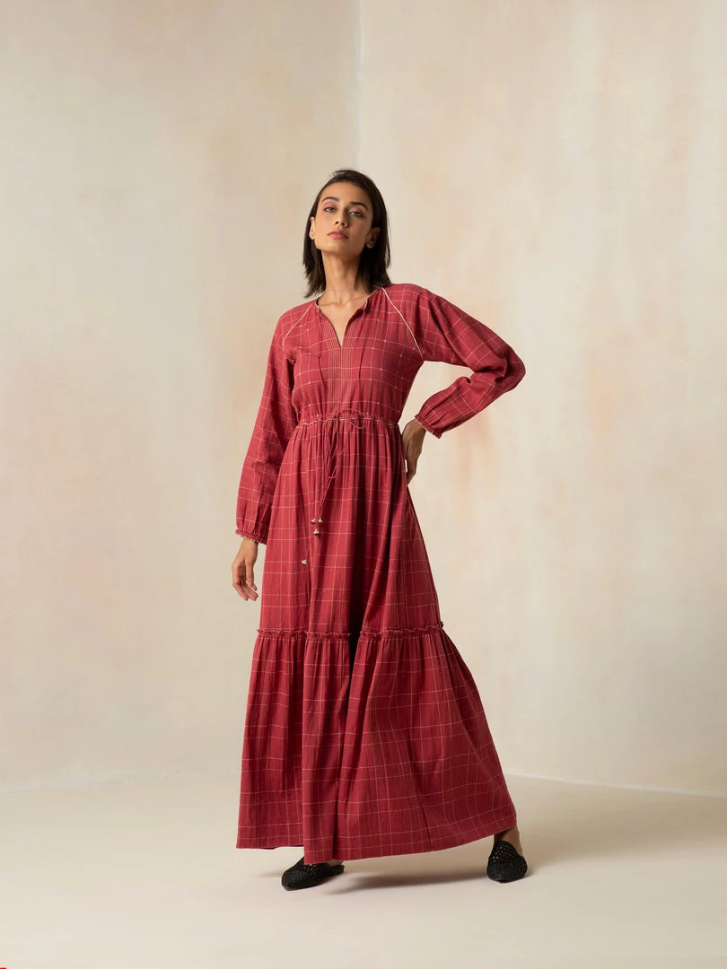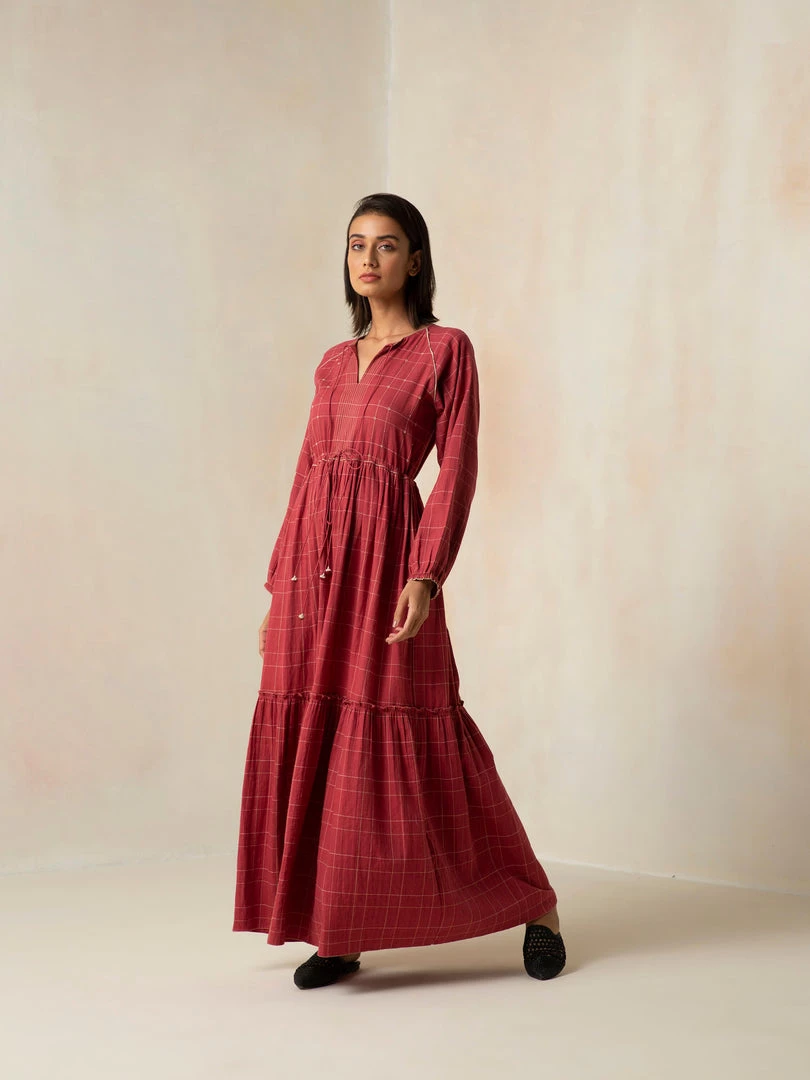 Wear our signature maxi silhouette in a warm shade of crimson to moody fall evenings or pair it with our winter jackets.Â
