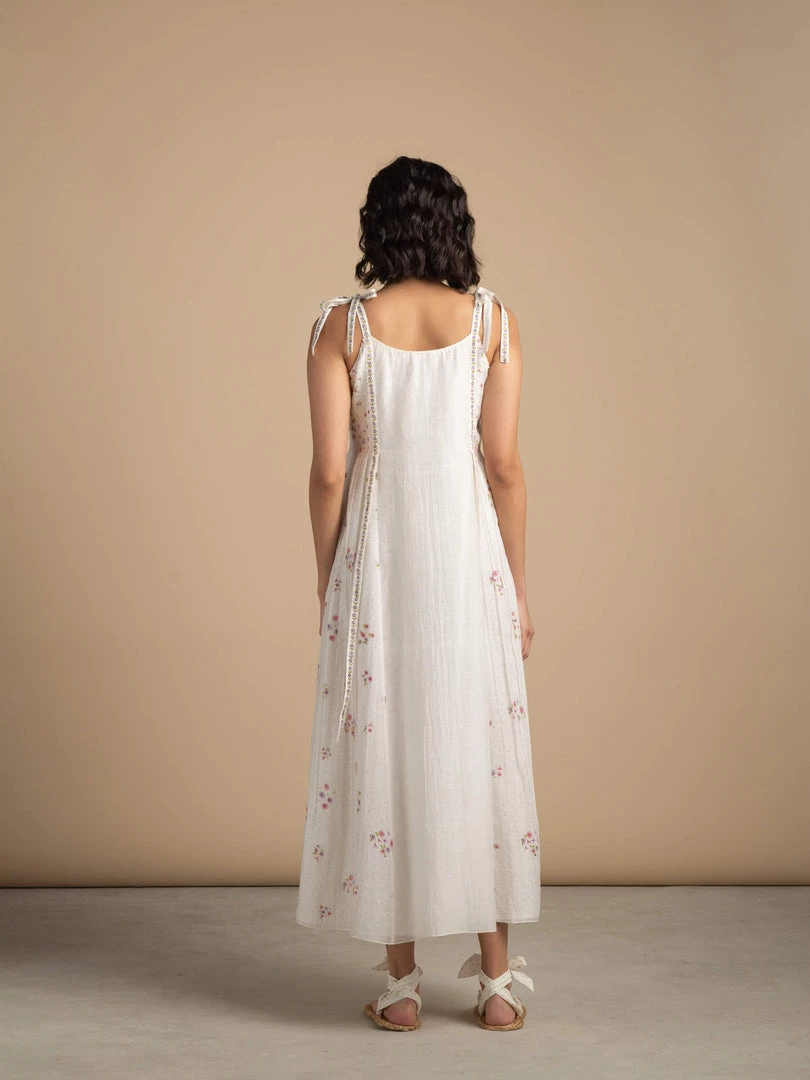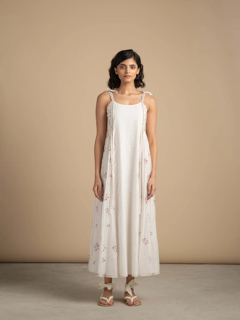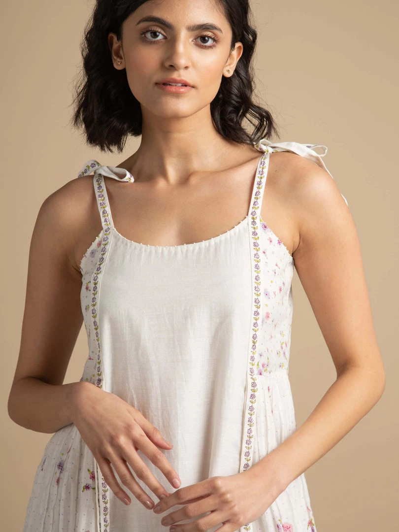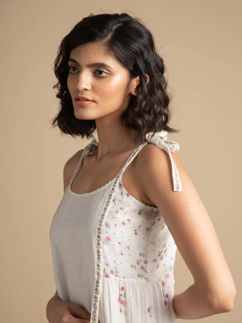 Dance carefree to the sunshine in the fields of wildflowers in our Garland Bow Sundress. It features tie-up straps and cascading floral hanging strings, which can be bow tied in multiple ways.