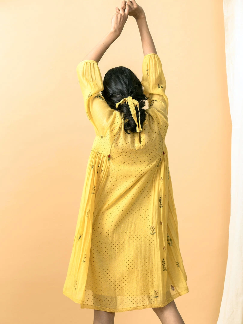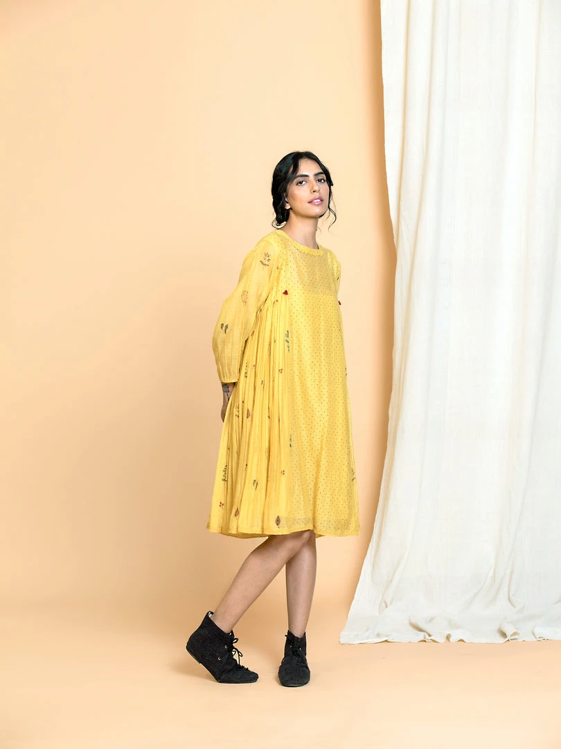 This breezy dangle dress adds fun to everyday wear. Complimented with fine details like small red tassels, kantha hand stitches and hand hemming, it is a refreshing addition to your wardrobe. It comes with a slip dress to wear underneath.