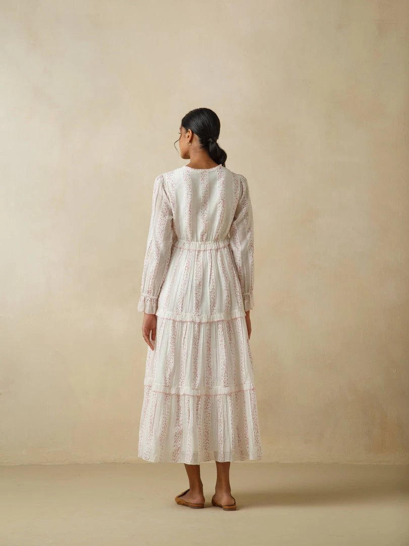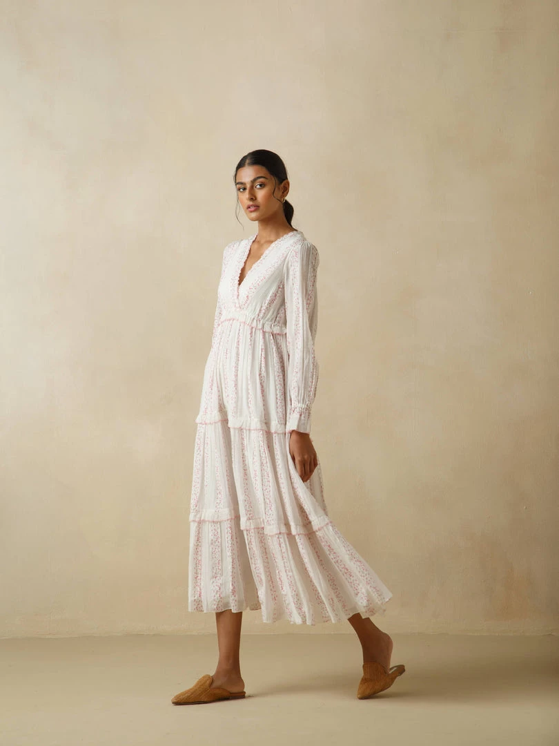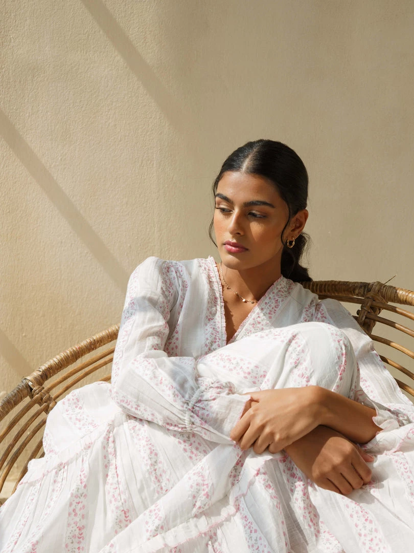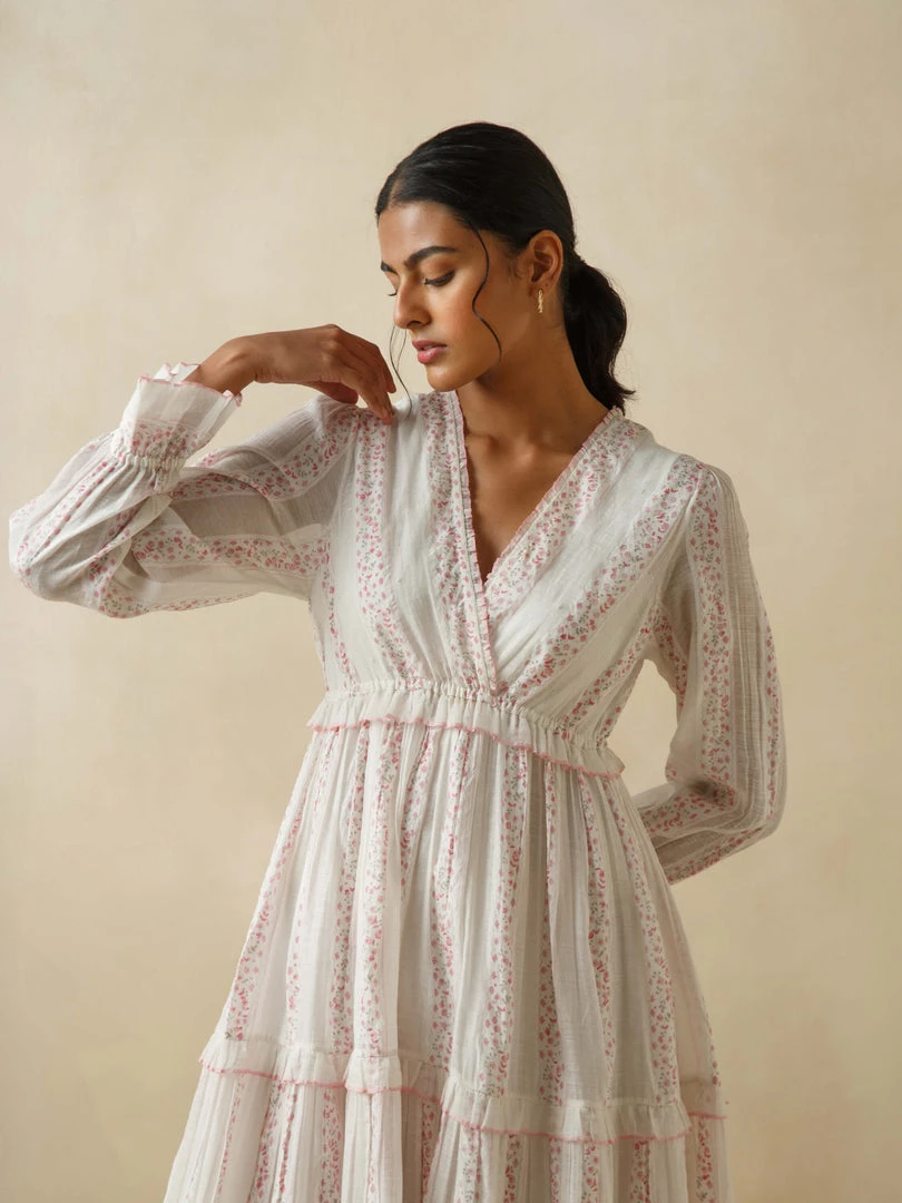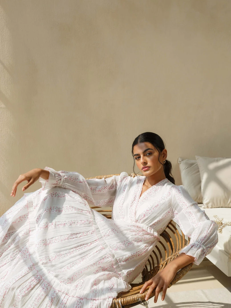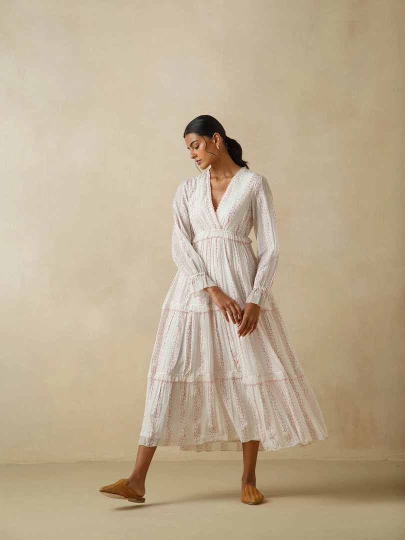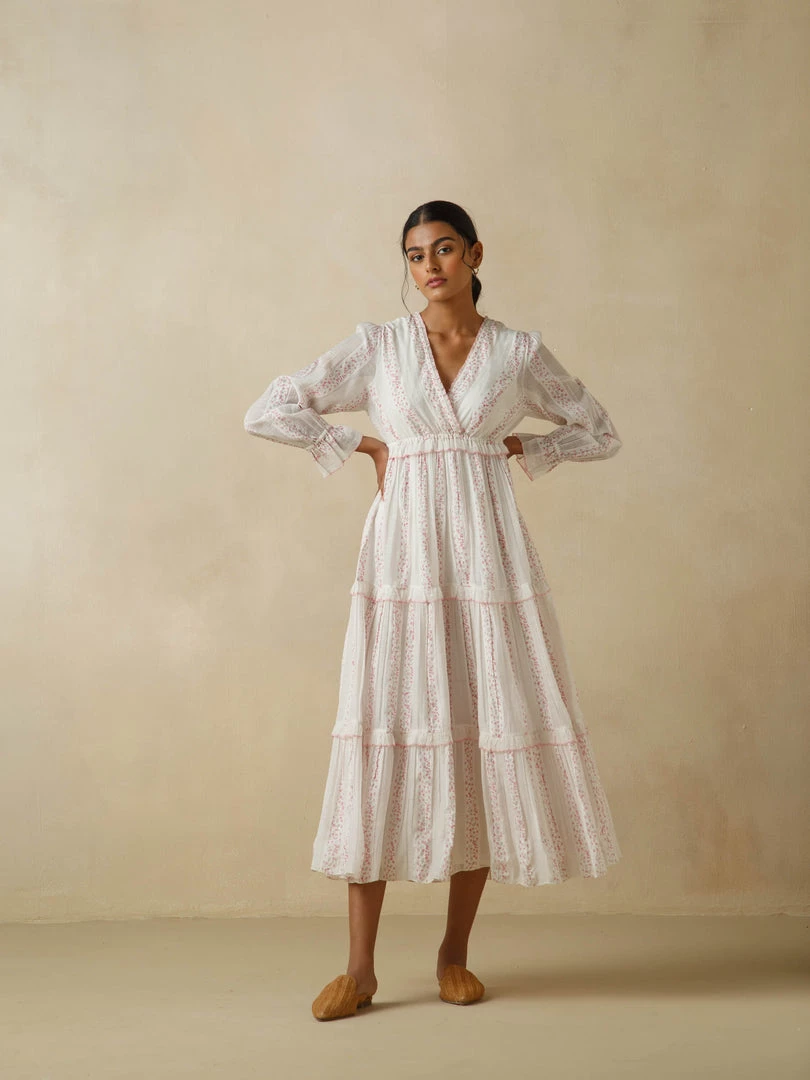 Indulge in an escapist romance with our new poetic and celebratory silhouette perfect for summertime outings. Tailored from airy handloom cotton silk fabric, the Lovestruck Wrap Dress has a flattering wrap effect on bodice with elasticated waist flowing into an airy tiered midi. Team it with sandals and a tonal tote bag for summer styling.
