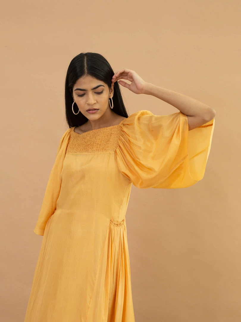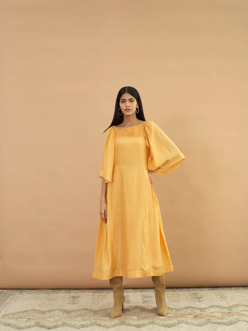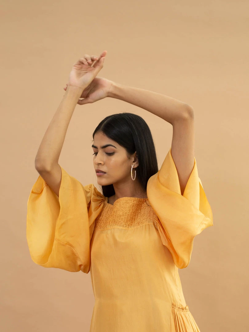 Autumn dreams come true in our bow dress in pastel yellow. Wear it for evenings out with friends or to add fun to any occasion.