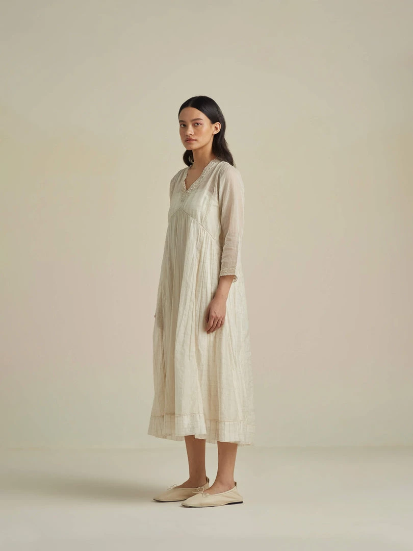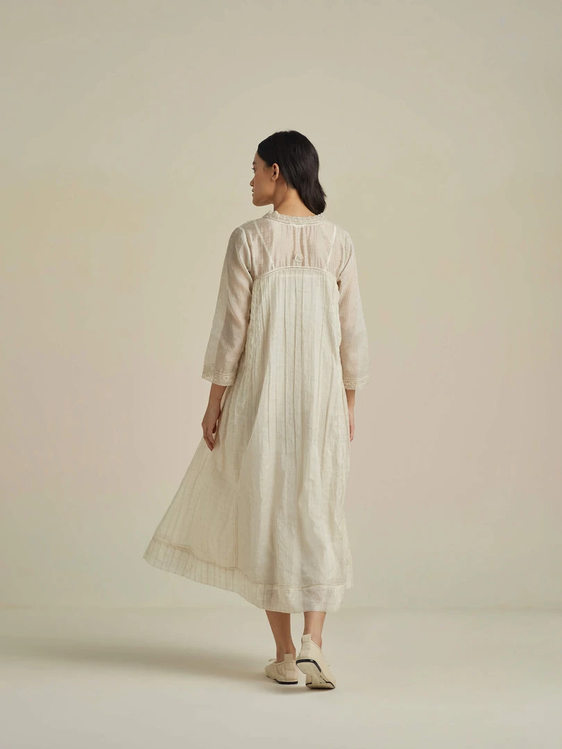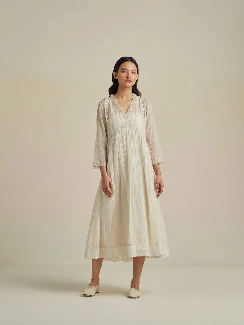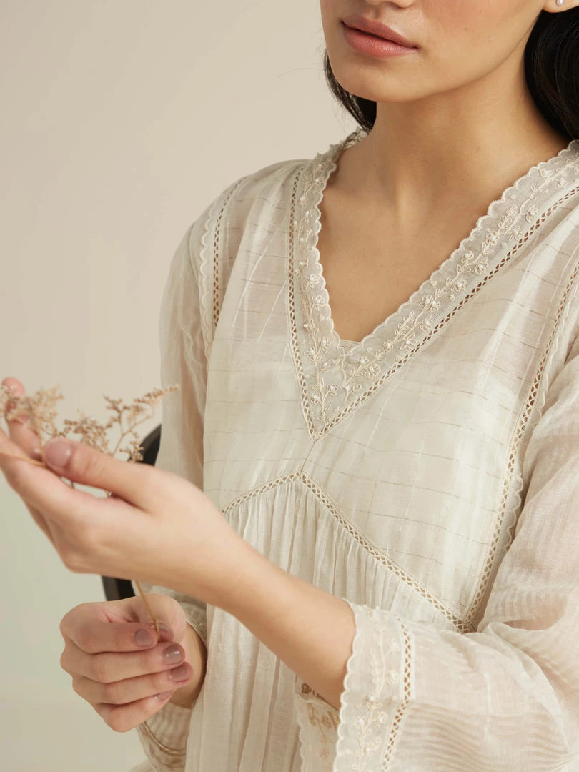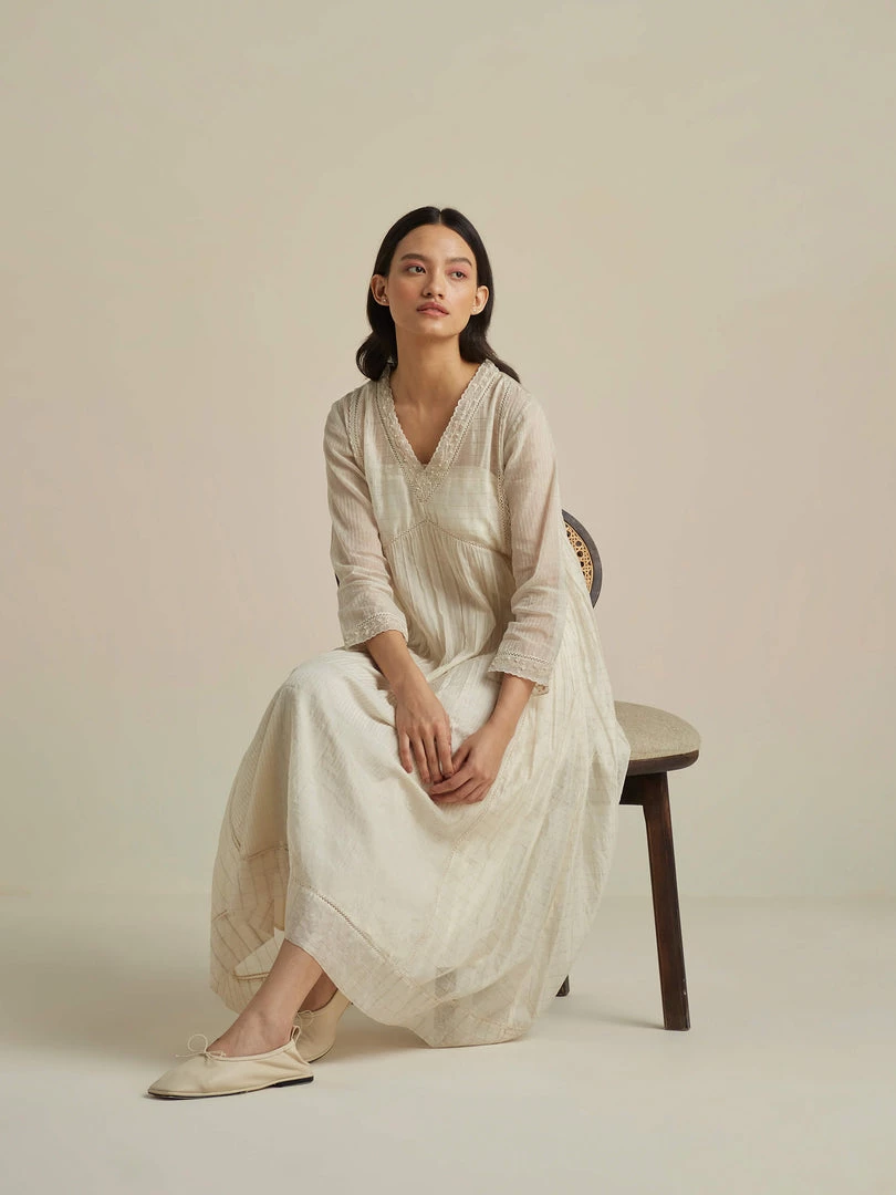 The Midori dress is the perfect mix of comfort, beauty and relaxed sophistication. The medley of tissue cotton fabrics, hand embroidery and lace inserts adorn this dress for an elevated look.