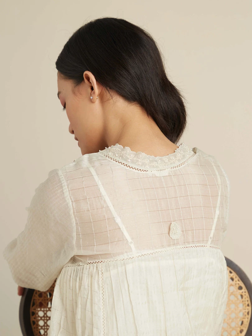- Delicate lace inserts on the neckline, yoke, waist and sleeves