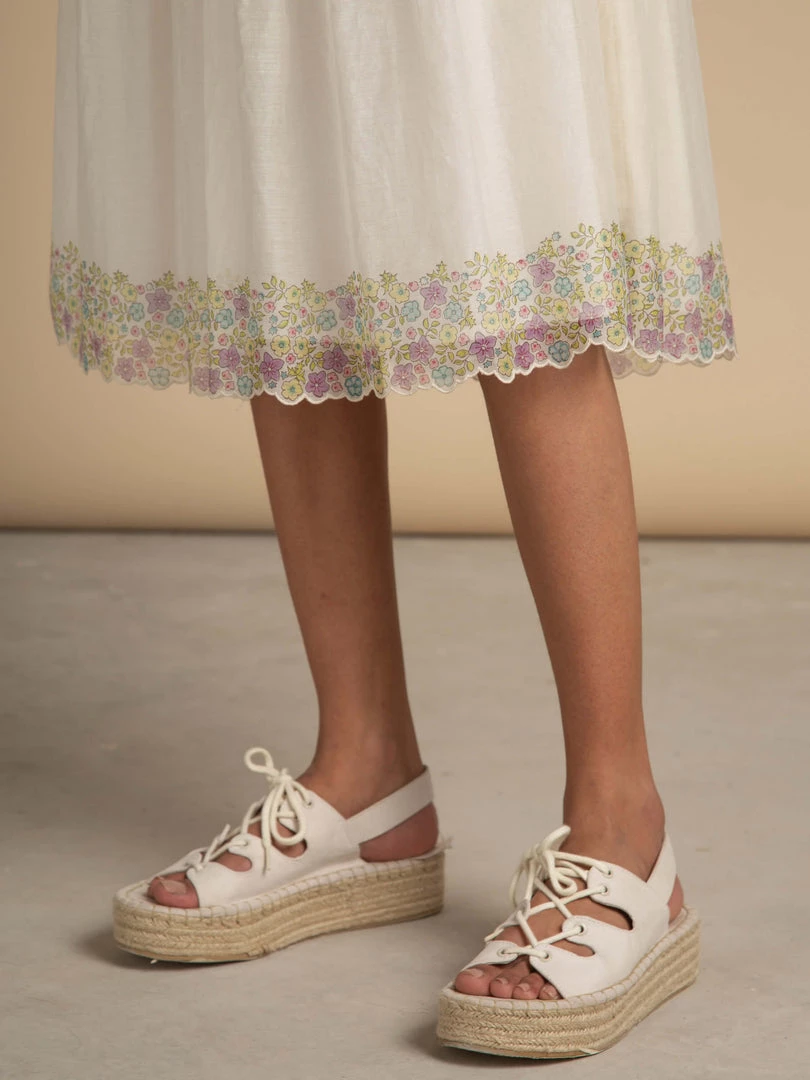 - Hand block printed florals on scalloped hemline