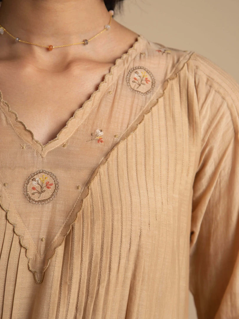 - Pin tucks on front and back body