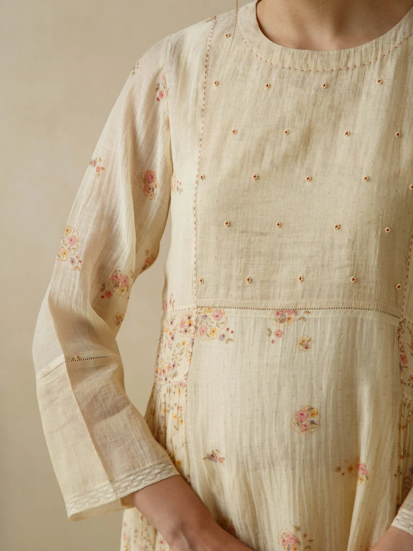 - Beaded floral embroidery on the front yoke