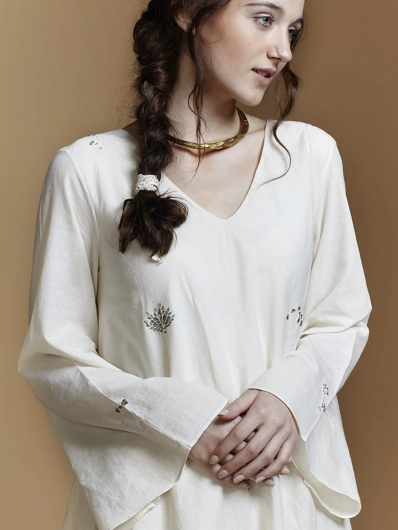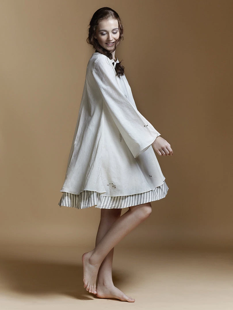 Buna recommends this graceful dress for casual Sunday brunches and mirthful outings with friends. The voluminous shape allows ease of movement, leaving you energised and relaxed.