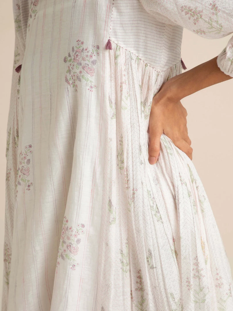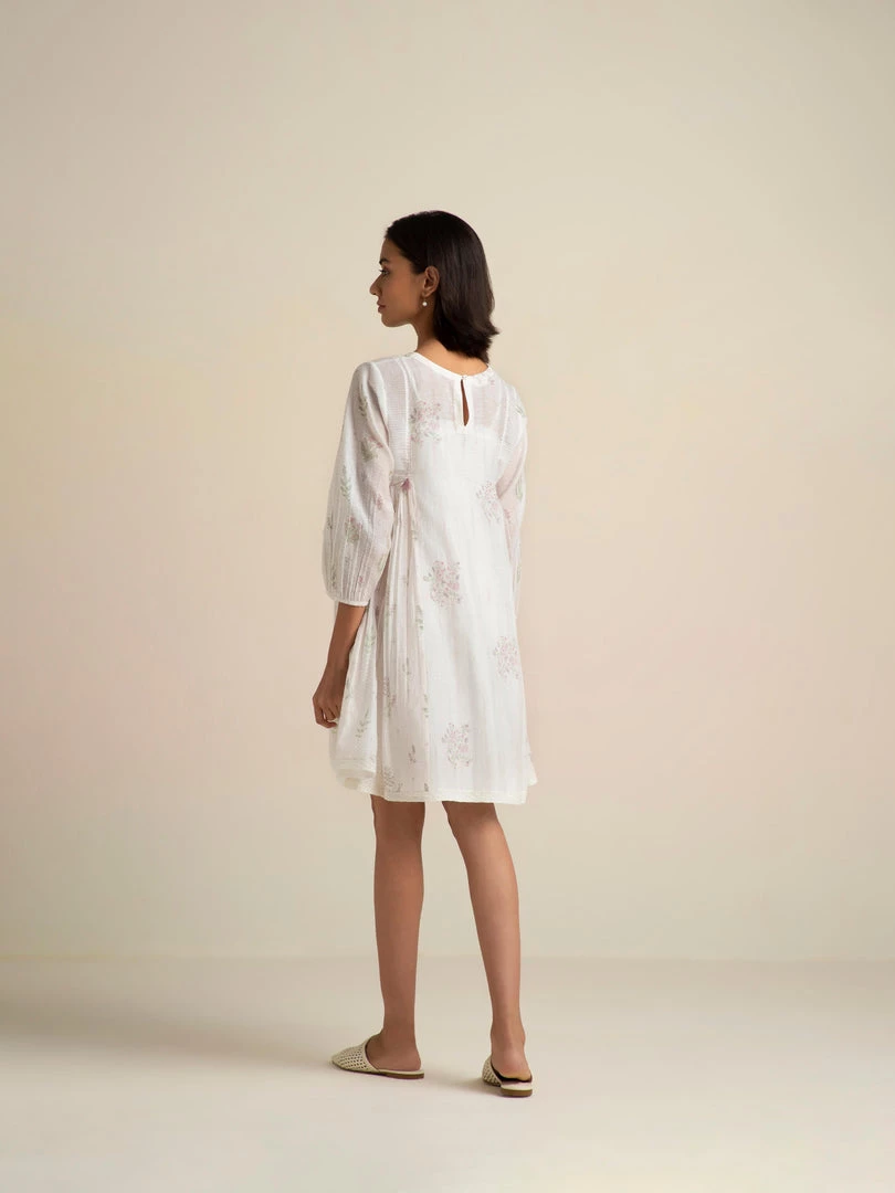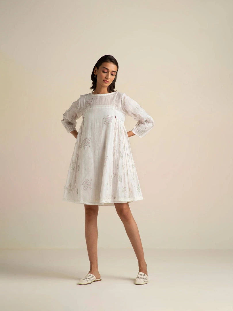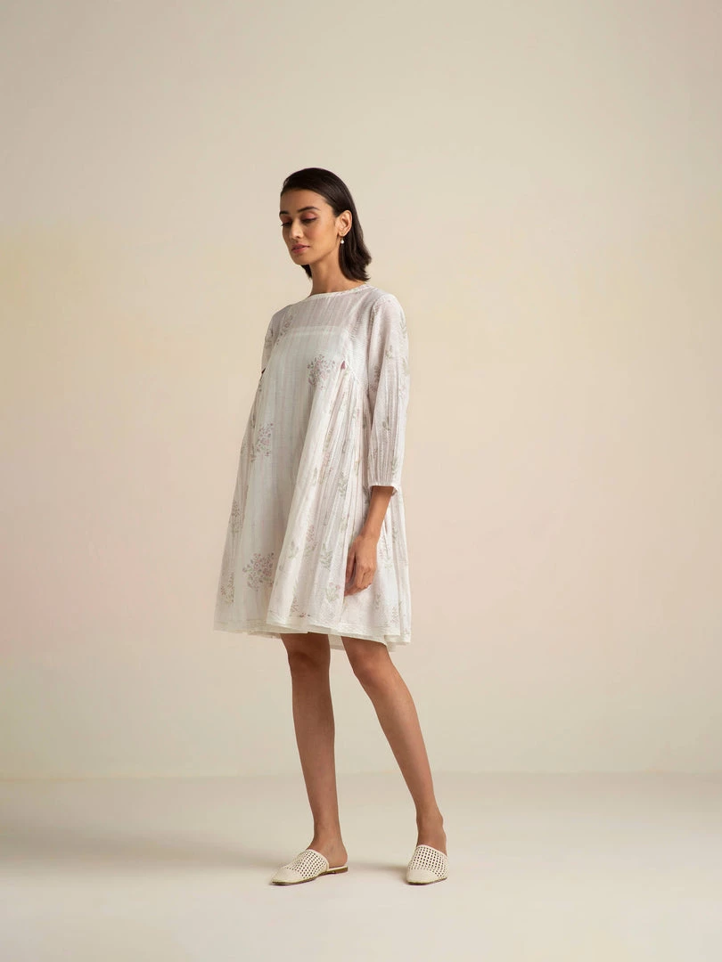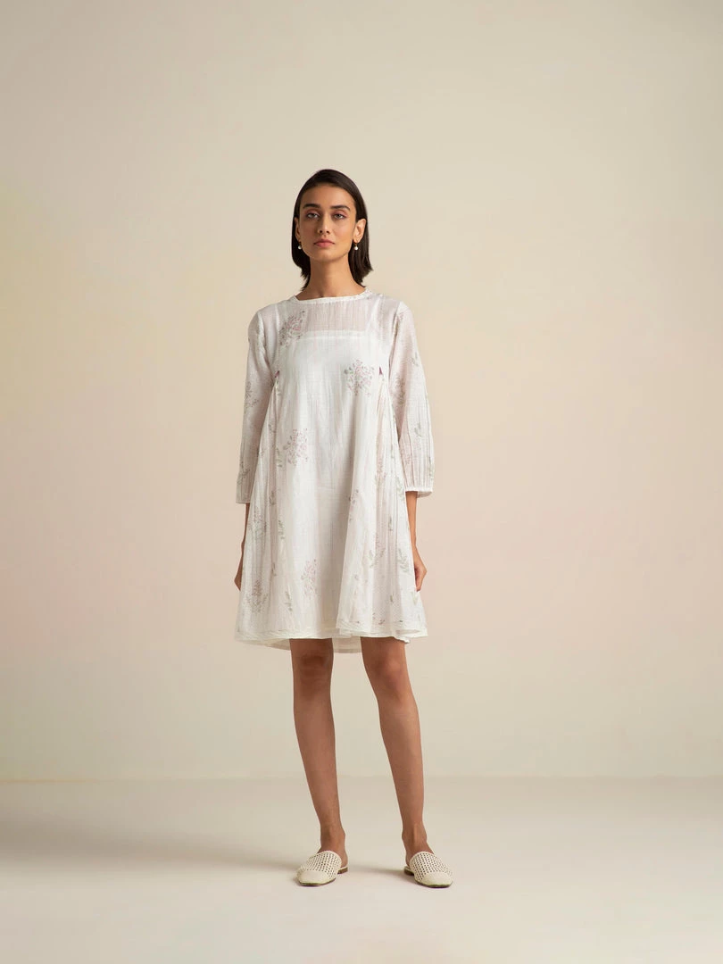 This breezy dangle dress adds fun to spring dressing. Complimented with fine details like small red tassels, kantha hand stitches and hand hemming, it is a refreshing addition to your wardrobe.Â