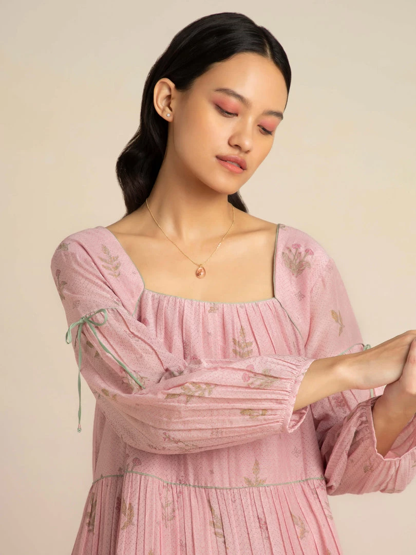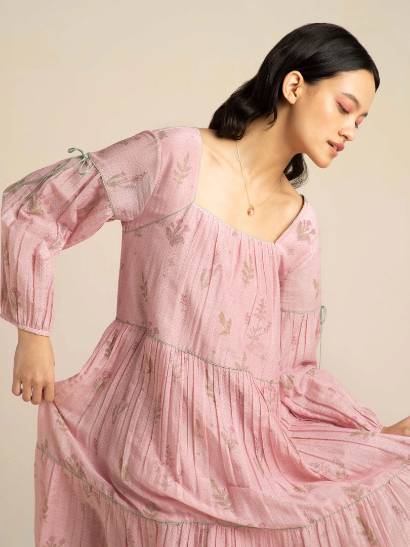 Gentle and feminine, our Verdure Dress has a billowy form, abundant tiers and ditzy piping details. A homage to bursting plant life, this cotton silk fully lined dress brims with intricate details.Â