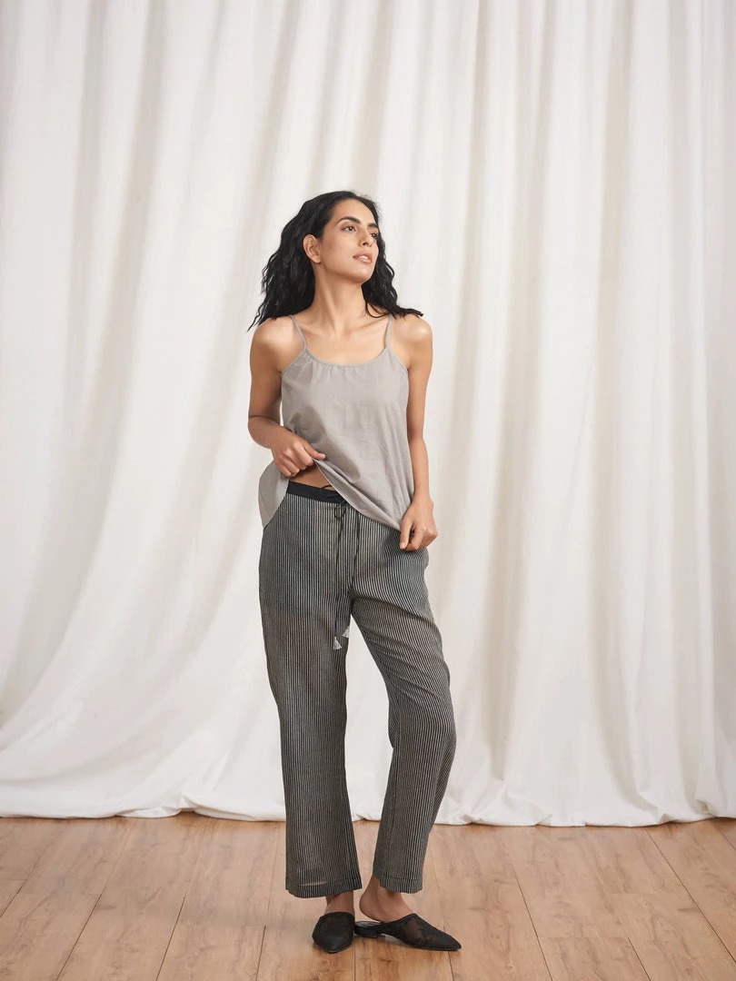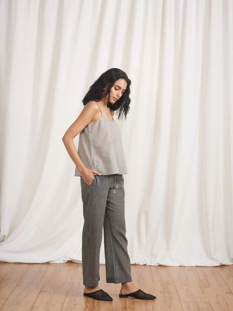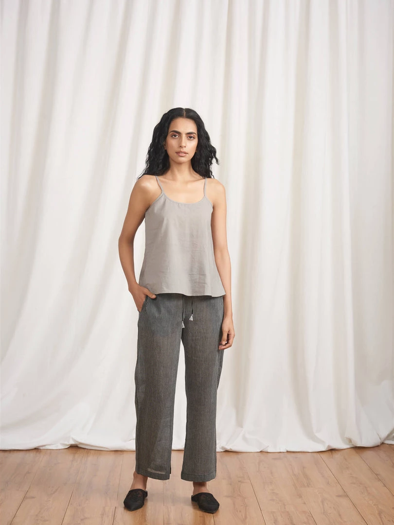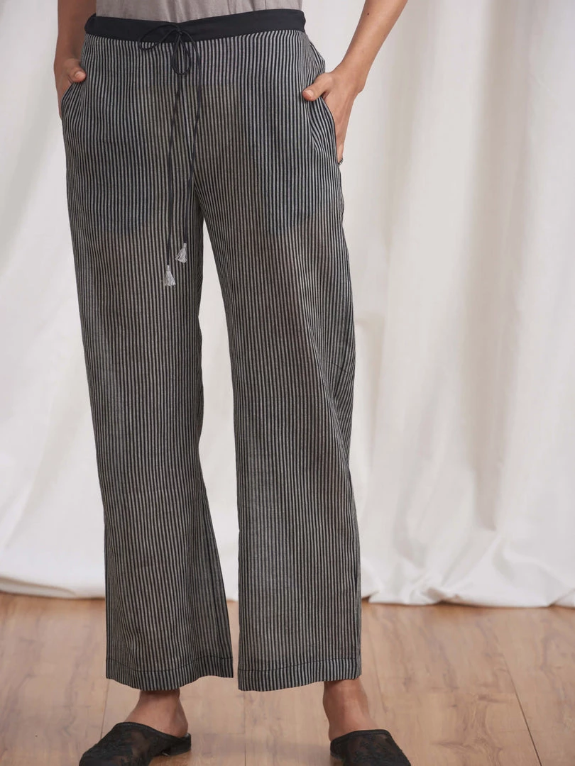 These straight fit cotton pants feature tasselled drawstring tie ups and in seam pockets on both sides. It is elasticated at the back for comfort and can be teamed with any of our dresses in this collection.